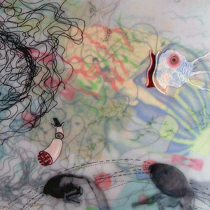 I always begin with drawing: I create my own world that is both micro & macro, physical & intangible. Biological forms from the cellular to the life-size - morph together in the style of Medical Illustration. Objects and creatures sometimes float around in an imaginary intergalactic/underwater space full of strange encounters. Movement through time is important to me: I use dashed lines to show where things are going or where they have been.