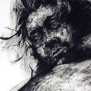My current focus is an exploration of self-portraiture within the medium of charcoal on paper. Through this medium I engage the dramatic contradictions that make up the human animal, most notably the primal vs. the refined, the contained vs. the uncontained, and the perfect vs. the flawed. I explore these oppositions through diverse mark making that is loose and confined, basic and refined, and aggressive and controlled. Dramatic angles, high contrast, larger than life scale, as well as subjects that are stripped of social niceties in their actions and appearance (usually fat and hairy) provide insight into the tension, conflict, and challenges of the human condition.