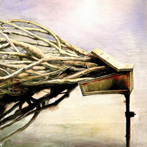 Culture and Nature itself took me two months to complete. It is based on Hong Zhang's 2003 outdoor installation at the artists‚ residency in Skowhegan. By combining the old school desk with the growing out tree branches, it is the metaphor for interweaving of the learning journey with the flourish of nature.