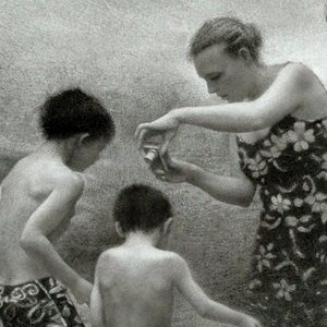 Images of figures or figures in landscapes, in groups or in isolation, share a common feeling of significance. Wholly absorbed within themselves or the dialogue shared between one another, they wait for the unfolding of their private story.