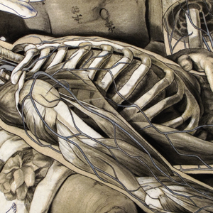 In my most recent drawings I have begun to more broadly explore visual complexity and ornamentation in conjunction with my prior interests; which have long been rooted in contemporary trends in figurative and portrait based works, as well as fringe images of the body, either in medical illustration or cartoons. This push towards excess and/or ornamentation propels the figures in to another space, and permits the psychological possibilities or fantasies of the figures (or those embedded in the narrative) to operates outside of normal spatial conventions, and in short become uncanny. In some respects my goal has been to make each new image more beautiful and self-indulgent than the last, while still challenging traditional notions of pain, violence, optimism, and beauty.