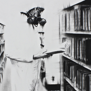 This body of work is concerned with the collective psyche of contemporary America. The drawings explore the dual nature of people's self defense solutions. The hazmat suit represents the need to create a safe barrier between the individual and any potential harm. It also simultaneously inflicts a sterile solitary environment upon the individual, effectively removing them from the world. This layer of living interference illustrates the compromise of a society that desires to be uncomfortably safe rather than freely facing uncertainty.