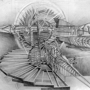 "I have always been attracted to the anatomies of humans, animals, machines and biological habitats. When I first draw, my marks are highly analytical with the purpose of dissecting the underlying substrates that give each individual object its structure. The process produces relationships between spines, linchpins, cogs and intercellular scaffolds all sharing a linear dynamic. I now explore potential integrations of these anatomies, patterned formations, and kinematical movements. The result is a metaphoric assembly. In the end my creative challenge is to arrive at a meaningful graphic choreography. If I am successful in this assembly, the viewer grows curious about the metamorphosis before them and becomes a welcomed engaged participant."