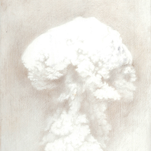 Kirsty Harris's recent small scale silverpoint drawings are based upon archival images of nuclear mushroom clouds. She aims for a quiet sense of foreboding, to harness the delicate nature of the medium, capturing ginormous, fleeting moments of history in a consuming and meticulous manner.