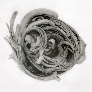 The fun starts in the hyper examination of the tumbledown (this is when the ordinary can become the exceptional). Through editing, focusing on form, changing scale and by repetitious mark-making, I create, in my mind, abstracted vignettes, derived from the natural but reconstructed into somewhat ambiguous arrangements.